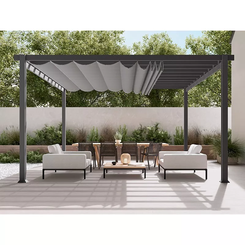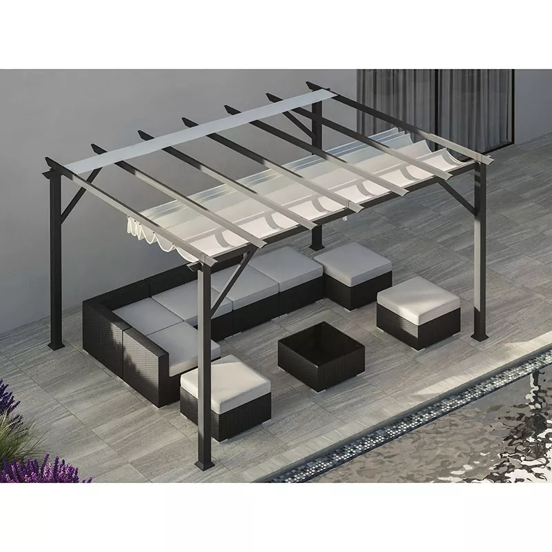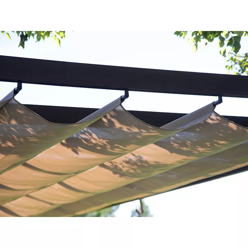 Bahagian yang paling mudah dan menarik ialah kanopi Fabric Roof Pergola, yang boleh dibuka dan ditutup seperti langsir di rumah. Apabila matahari membesar, tarik cahaya penghalang; Jika anda mahukan pengudaraan dan pemandangan, hanya tolak perlahan-lahan dan simpan. Anda boleh melaraskan "langit" di atas kepala anda pada bila-bila masa mengikut mood dan cuaca anda.