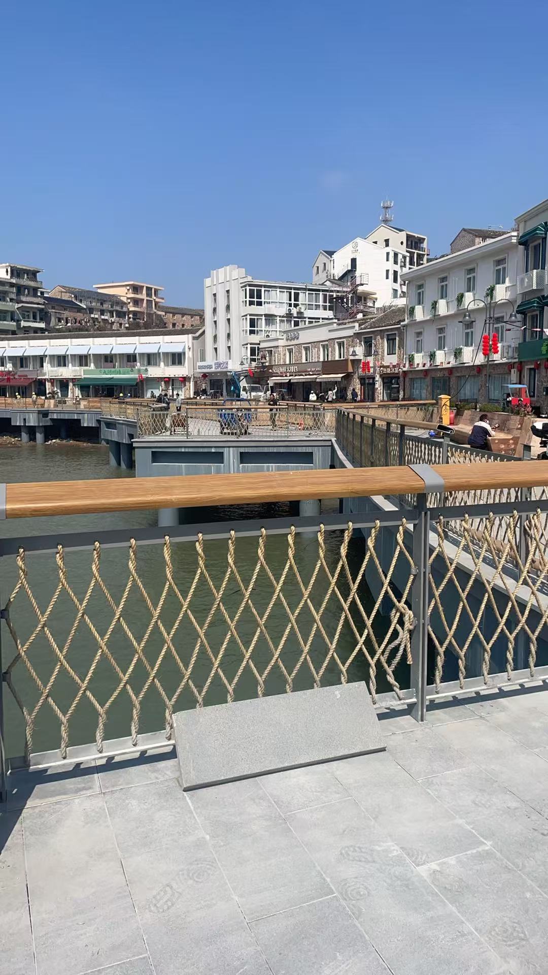Bahagian tengah saling berkait dengan tali rami semula jadi, yang bukan sahaja menyediakan fungsi perlindungan asas tetapi juga meningkatkan hierarki visual keseluruhan dengan ketara, menjadikan pagar lebih harmoni dengan landskap semula jadi pulau dan mewujudkan suasana pantai yang santai dan semula jadi.