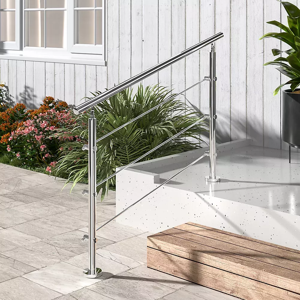 Diperbuat daripada keluli tahan karat berkekuatan tinggi, Pagar Tangga Tahan Karat Vionta adalah kukuh dan tahan lama, dengan berkesan menghalang gelincir. Kemasan bersalut krom menjadikannya tahan cuaca dan tahan kakisan. Pegangan tangan ini mudah diselenggara; hanya lap dengan kain atau bilas dengan air. Palang tengah adalah mesra kanak-kanak dan juga meningkatkan kestabilan susur tangan.